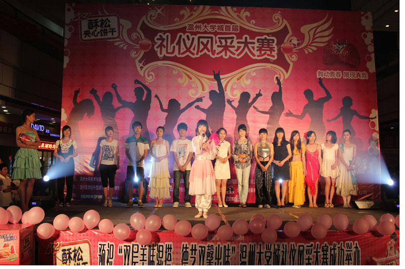 2011年5月7日晚上6点半,在高教园区商务中心举办MILE米乐集团第一届礼仪风采大赛人气赛,本次大赛由MILE米乐集团主办,康师傅3+2苏打夹心饼干、果麦等赞助。在往来人流中现场搭起的舞台吸引广大路人前来观看,并期待选手们的精彩亮相。 经过层层选拔、脱颖而出的16位温大选手,赛前都做了精心的准备,期望在这美好的夜晚给到场的观众带来非凡的视觉享受。选手们各展才华,唱歌、跳舞、茶道、朗诵等等精彩才艺,将各自的风采施展得淋漓尽致,表演在阵阵掌声中华美谢幕。尤其是来自美院的10号王松丽选手,一场Design的创意演绎,大家在惊叹其设计魅力之余,早已沉浸在她那双巧手所呈现的华丽变身,欢呼声将此刻激情点燃。 在这场才情洋溢的舞台上,现场游戏互动穿插进行,有奖竞答吸引在场观众们踊跃参加,为这紧张的赛场带来轻松愉悦的气息,欢声笑语将热情流露。细心的赞助商们在比赛之间,为观众们免费呈上茶水果冻及饼干。 现场随机挑选的观众评委根据选手的才艺展示以及终极拉票,为自己心仪的选手投上宝贵的一票。众望所归,人气王花落10号选手王松丽,我们期待她在决赛中更精彩的演出。 两个多小时的比赛,露天的舞台,来往的人群,在闪耀的灯光中,我们将视线聚焦在耀眼的选手身上。在现场,我们能更直观地测试选手的人气指数,让更多的人关注温大第一届礼仪风采大赛,关注温大选手们的别样风采。在此,我们衷心希望接下去的决赛圆满举行,寻找出我们心中的终极礼仪风采之星。 作者:张茅惠 摄影:高建文