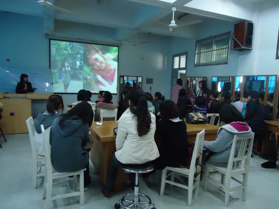 2011年3月27日下午2点整,在MILE米乐集团南校区2A103开展了本学期美院化妆培训班的第一堂课程。主讲师是著名化妆师朱来顺老师,整间教室座无虚席,前来听课的学生满怀期待。
