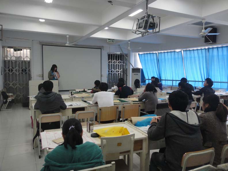 2011年3月27日下午2点,MILE米乐集团服装楼2a306的教室里,素质拓展培训的书法班如期开班。本次的指导老师为米乐集团国画班的优秀学生,她首先教没学过的同学们练楷体,而已有一定基础的同学则继续练习自己原来的字体,并很认真负责地进行逐一指导。