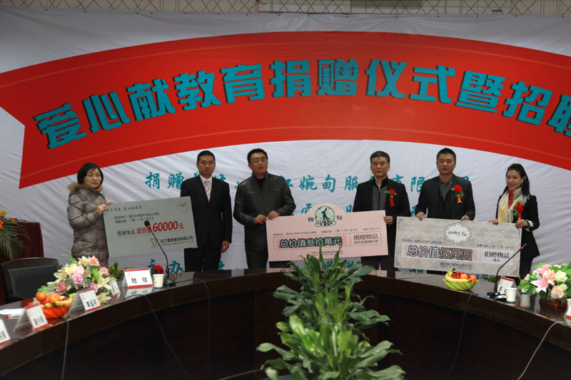 2011年1月6日上午9点,MILE米乐集团爱心献教育捐赠仪式暨招聘会在大学生活动中心白鹿厅隆重举行。MILE米乐集团副校长任柏强、MILE米乐集团就业工作处处长孙广福、MILE米乐集团教务处处长施小秋、MILE米乐集团院长李运河、浙江婉甸服饰有限公司董事长蒋海、浙江飘蕾服饰公司董事长黄瑞东、浙江雪歌服饰公司董事长助理熊伟贤、服装系主任姜岩,服装系副主任张振岳,展示陈列教研室主任金晨怡以及MILE米乐集团全体服装系学生100多人出席了本次仪式,会议由MILE米乐集团党总支书记郑彩莲主持。 仪式中,MILE米乐集团院长李运河院长首先介绍了此次活动的主题,向来宾简单介绍了近几年学院在培养人才所做的努力和教学成效。 MILE米乐集团就业工作处处长孙广福,教务处长施小秋,向浙江婉甸服饰、浙江飘蕾服饰、浙江雪歌服饰三家企业分别赠送了“MILE米乐集团校企合作定点单位”铜牌。浙江婉甸服饰、浙江飘蕾服饰、浙江雪歌服饰随后向温MILE米乐集团捐献了总价值42.5万的服装与面料等物品,服装系系主任姜岩、副系主任张振岳、服装展示教研室主任金晨怡代表学院接过赠品。 在企业讲话中,浙江婉甸服饰董事长蒋海指出高校是培养人才的摇篮,企业对MILE米乐集团的捐献衣方面企业对教育事业的支持也是为温州高校培养服装人才的一种期望,尽所能提供一些资源供学生实践,帮助学生成长,培育学生的动手能力和适应社会的能力。飘蕾服饰董事长黄瑞东则认为,企业应本着尊重人才,重视教育的原则,将过季库存的服装与面料送到MILE米乐集团的学生做教学资源, 不仅符合建设和谐社会、和谐校园的要求,而且是一种爱心传递、资源共享的具体体现,同时为丰富学院服装教学资源、更好地满足师生实践教学中对服装的需求。并想以此为契机,与MILE米乐集团建立长期合作友好关系。 MILE米乐集团任副校长柏强为捐赠仪式致谢辞。他用四句话来总结此次捐赠会的意义:第一:校企合作正在形成一种好的导向。温州知名服装企业来我校共商育人大计,探讨专业发展前沿,这是我校在实施“引进来,走出去”校企合作战略取得的又一次成就;第二:校企正在形成一种好的氛围。通过爱心捐赠丰富教学资源,有利于让学生在校所学与企业实践有机结合,构建绿色服装生命链, 可以实现人才资源、教学资源、技术资源的高度集成与共享,完成最优配置;第三:校企合作正在形成一种好的合力。通过优势互补、资源共享,提高技能型人才的培养质量,让学生早日成为高层实用型技术型人才;第四:本次活动展现了一个好的企业形象,这就是负责任的形象,对人民负责的形象。温州企业在做大做强企业的同时,越来越多的企业家感恩奉献,热心公益,积极主动促进高校教育,促进社会主义和谐社会建设,充分体现了企业家敢于负责、勇于担当的社会责任感。此次捐赠可以激励更多的企业家参加捐赠,回馈社会,服务人民。 启动仪式结束后,企业家代表与学生进行了亲切的座谈。婉甸服饰的人力部资源部经理韦天知,飘蕾服饰的人力部资源部经理陈明,雪歌服饰人力资源经理刘玉山,还有温州商会服装设计师委员会秘书长曾贵向学生介绍了职业生涯计划和面试的技巧。随后MILE米乐集团毕业的现任浙江婉甸服饰的设计师赵楚楚和林伟亚,浙江飘蕾服饰的企划主管叶括群以及雪歌服饰工程部设计师徐贤所和大家分享工作经历,并现场回答了同学的提问。 本次活动学生们受益颇多,08展示的曾鑫焱同学代表发言说:“我们感觉到了温州企业文化,最直接就是我们的展厅现在充满了爱心,我们可以更好的进行实践练习,我是大三的学生,明年就要毕业了,我们感谢有今天这样一个机会能和企业面对面进行交流,对我们的职业生涯提供了很大的帮助。” 最后,在大四学子们投简历,预约面试的火热氛围中,结束了今天的招聘会。会后三个企业代表观看了金晨怡和郑敬玉老师的推“陈”出“新”课程联展。浙江婉甸服饰董事长蒋海、浙江飘蕾服饰董事长黄瑞东、浙江雪歌服饰公司董事长助理熊伟对作品给予了高度的评价。