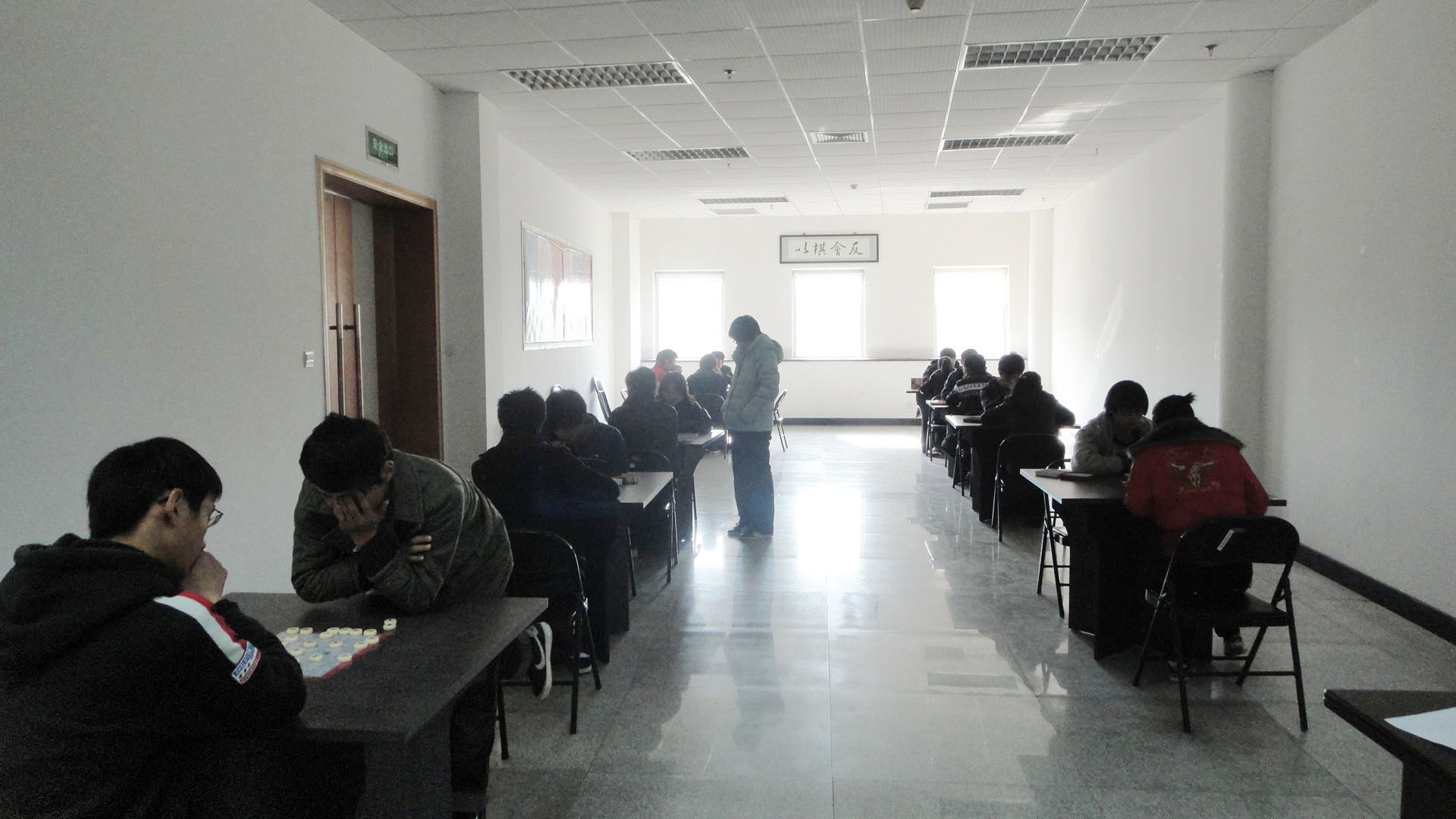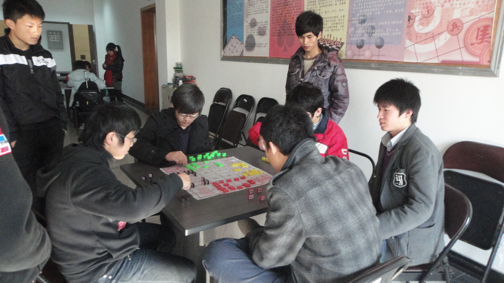 比赛的棋种有围棋、跳棋、中国象棋和四国军棋。很多同学参加了不止一个项目的比赛,使得比赛气氛更加浓郁。进程中,同学们斗志依谋,各展才华和棋艺,将比赛不断地推向白热化。 “一步跳”,“三步跳”;“一辆车”,“一匹马”等,上演的都是才智的精彩热战。很久后,比赛结束,但同学们各个意犹未尽。