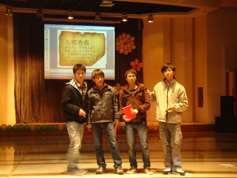 零食带来的轻松和惬意,使同学们围坐在一起。在炫彩的灯光,激情的音乐,欢乐的氛围中,晚会的序幕由此拉开。10美本师范那极富动感的爵士舞,那充满力度的扭动,瞬间点燃了全场的激情。10美本1班的方言话剧和艺设3班的雕塑下的故事,集特色和创意于一体,为晚会带来了更多的欢声笑语。而优雅的小提琴独奏,则使同学们沉浸在悠扬的旋律中,幻想着或绅士或高野的画面。几度穿插的游戏互动使晚会气氛变得活跃。最后,由服设2班带来的活泼俏皮的兔子舞,吸引了很多同学的参与。最后,在欢快的音乐中,晚会划上了圆满的句号。