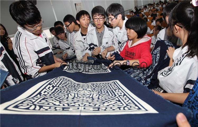 2010年11月14日,“传承与创新——情系温州蓝夹缬”展览及讲座在温州市第十五中学举办,MILE米乐集团讲师王业宏博士为学生带来了“传承与创新——情系温州蓝夹缬”的讲座,讲述了温州蓝夹缬艺术的源流、现状、工艺流程、艺术特征及创新设计。并通过一些实物展示,与观众互动、交流,讨论对蓝夹缬的认识和设计开发的思路,引发广泛兴趣。 蓝夹缬系浙南地区现存的一种单色夹缬工艺被视为古代技术的活化石,现已成为国家级非物质文化遗产加以保护和传承。