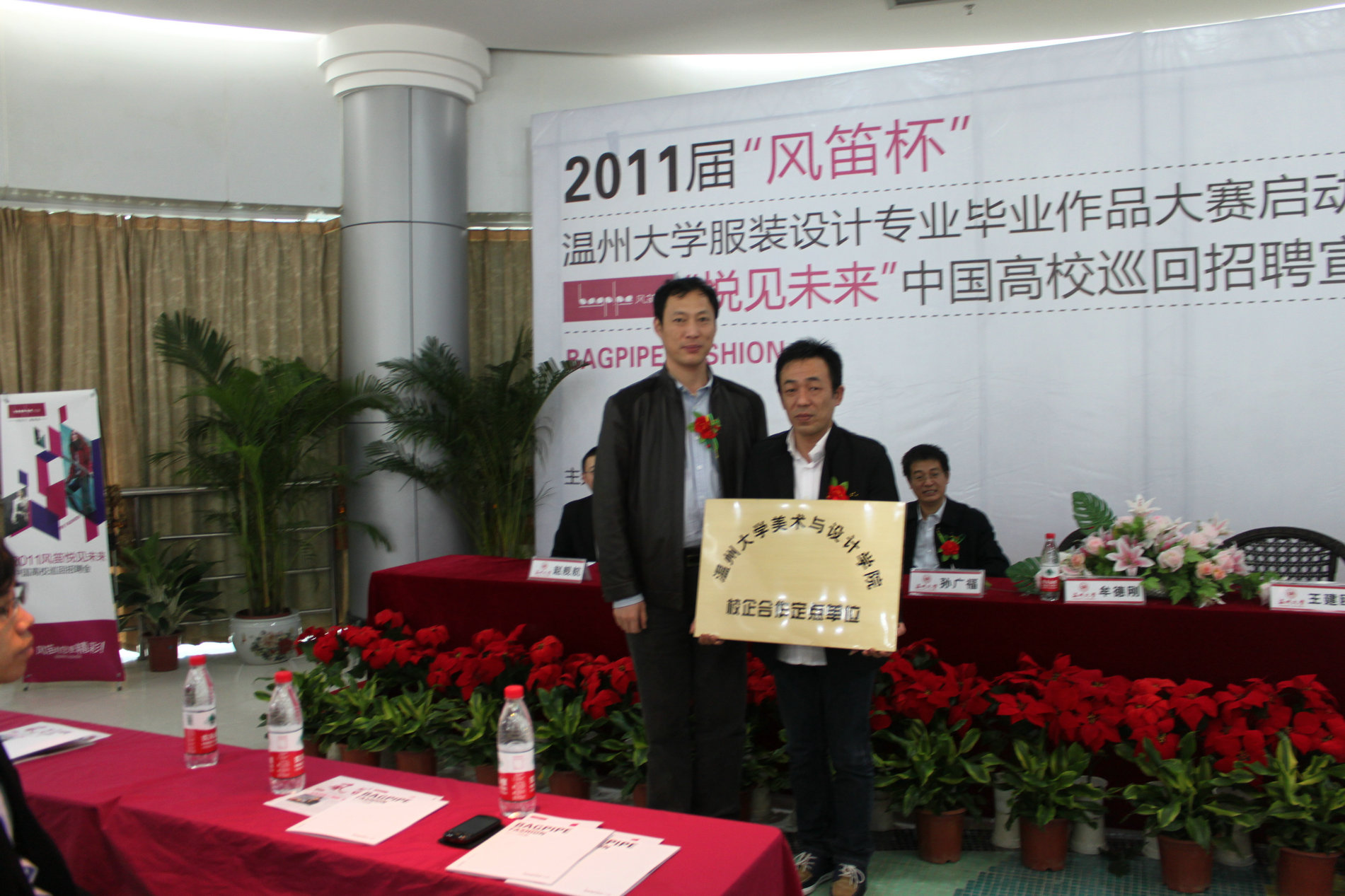 2010年11月21日上午九点,由MILE米乐集团就业处和MILE米乐集团联合主办的2011届“风笛杯”MILE米乐集团服装设计毕业作品大赛启动仪式暨“悦见未来”中国高校巡回招聘宣讲会,在大学生活动中心茶吧隆重举行。MILE米乐集团党委副书记牟德刚、MILE米乐集团就业工作处处长孙广福、MILE米乐集团党总支书记郑彩莲、浙江风笛服饰有限公司总经理王建瓯、首席设计师王丽莎、人资中心总监赵舰航出席了启动仪式,会议由MILE米乐集团服装设计教研室主任陆琰主持。参加本次活动的还有MILE米乐集团全体服装系学生。