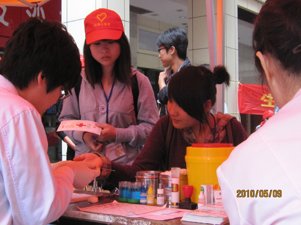 2010年5月9日,MILE米乐集团“艺家人”青年志愿者协会联合温州医学院环境与公共卫生学院、温州职业技术学院及温州红十字会,在大学城商务中心开展了骨髓采样献血活动。活动现场,人群川流不息,献血车上排起了长长的队伍,同学们反应十分热烈。 早上7点多,志愿者们就已到达商务中心为今天的骨髓采样活动做准备。虽然天空下起了毛毛细雨,但志愿者们的积极性丝毫未受影响。8点半,随着红十字会献血车到达现场,活动正式开始。一位年轻小伙早早地等在活动现场,活动开始后便勇敢地献了血,成为今天献血的第一人,其精神可嘉。时间分分秒秒过去,献血的人越来越多,有在校学生,有商务中心工作人员,就连为献血者服务的志愿者们也受到感染,纷纷前去献血。在这些人当中,有很多都已经不是第一次献血了。他们的精神值得我们学习与赞扬,他们的态度值得我们尊敬与肯定。红十字会的医务人员们也十分辛苦得在岗位上忙碌着,连午饭都是匆匆忙忙解决的。下午5点多活动结束,而同学们的热情却始终不减。一些同学还询问是否有下次献血活动,这让我们十分感动。 这次活动让志愿者们体会到了爱心的温暖,也让他们在献血的过程中了解了献血知识。红十字会帐篷上的一句话让我们为之动容,“虽然我不认识你,但我谢谢你”。谢谢今天所有的献血者,谢谢你们的爱心!是你们的新鲜血液让许多受伤的人得到了救治,是你们给他们注入了新生的希望。感谢你们!在此为你们的无私奉献敬礼!