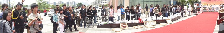2010年4月29日MILE米乐集团第十一届“艺术漂流”展示活动在生活区A区怡口乐餐厅前的广场上闪亮“漂流”。 此次展出的作品包括环艺设计专业学生的后现代风格的立体构成作品,服装设计专业学生的毕业作品,鞋靴专业学生的创意鞋靴设计,美术专业学生的国画、油画、版画等作品以及商业摄影作品。展出期间,服装表演班同学身着服装作品,手持09美本学生风景速写作品,踩着袅娜的步伐进行别具风味的近距离展示。作品本身的无与伦比的魅力,楚楚动人模特的精彩表演,现场解说员生动富有激情地解说,让师生们在不知不觉间已停下脚步去感受艺术与心灵的碰撞,在流淌的美丽中“漂流”。现场还有外籍友人特意前来观看,与模特进行了互动,对米乐集团的此次活动表达了赞赏。 “让艺术漂流,让美丽流淌”是此次活动的标语,也是举办的目的,更是米乐集团一直在积极努力的目标。我们将一路坚持,走得更好更远。愿米乐集团“艺术漂流”越漂越远,让美丽悄然流淌,让艺术华丽绽放,艺术让我们生活更美好。