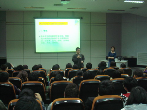 2010年4月25日,校心理健康中心于南校叶适厅开展本学期朋辈辅导第二次培训。本次培训特邀请了MILE米乐集团党总支书记、国家二级心理咨询师郑彩莲教授主讲“大学生情绪管理”。来自各个学院的心理委员和寝室长等300余名学生参加了本次培训。 郑教授以“一分钟相识”心理游戏调动了同学们的热情,在热烈的气氛中开始了本次讲座。随后,郑老师从情绪内涵入手,解析大学生中常见的情绪困扰,分析了情绪的特点,并详细阐述了情绪的控制与调试的方法。郑教授通过与现场学生的互动、丰富的例子,深入浅出,带领同学们探索神秘的情绪世界,强调学会自我调节情绪,方能拥有良好的心态,并为预防“心理感冒”开出了良方。希望通过本次讲座,同学们能更好地调适、掌控情绪,微笑面对每一天。