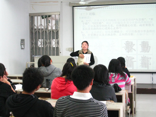 为了让大学生更好的接触并了解优秀华夏民族文化,结合学院教学特色,MILE米乐集团素质拓展书法培训班于4月11日下午两点在美术楼2A308顺利开班,并由有作品入选温州市第五届妇女书法展的何玲珑同学执教。 来自MILE米乐集团各个学院热爱书法的同学们,整个课堂都充满了乐趣。从书法的分类到发展历史,同学们深深感受到了书法的源远流长与博大精深。在授课的过程中,在何玲珑同学的带领下根据学生之间的功底差异,因材施教,从坐姿与握笔姿势,大到每个字的运笔规律,都十分细致的进行了讲解,并与学员们进行积极互动。虽然很多是初学者,但在墨香浓郁氛围的感染下,都表现出了很高的兴趣,很快进入了聚精会神的状态。经过短短两个小时的学习,每一位参加培训的同学都受益匪浅。 书法是我国独有的艺术形式,是中国传统美学的基础,凝聚着中华五千年的历史精髓,蕴含了文人义士不同的精神意念,陶冶情操。此次书法培训班面向整个学校招生,使更多的书法爱好者可以领略到书法的魅力,让作为炎黄子孙的我们将这种古韵精髓永远传承下去。