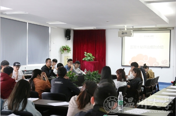 会议第一个议程是“五班十星”交流会,学风纪检部部长干家远同学对五班十星评选细则进行介绍并着重强调了“五班十星”荣誉的重要性。接下来李雪涛老师对“特色班级”和“美院之星”评选相关事宜进行了介绍,分别是从竞选班级中评选出五个班级以及竞选个人中评选出相对优秀的十个人并获得相对的荣誉称号。在接下来的提问环节,让同学们充分了解到本次评比的各种细节,也增加了同学们参与评比的信心和积极性!第二个议程是期中学风总结会,李雪涛老师对学风阶段情况进行综合性的总结,为了让大家更直观的了解到本班的出勤情况,我们采用了各年级的出勤率条形统计图鲜明的展示出了迟到旷课的具体情况,老师还细心的将每个班级的出勤情况进行公示,呼吁每个班级的班委要多多关注本班同学,如有什么特殊情况一定要及时和学院沟通。