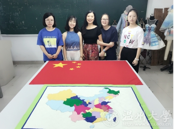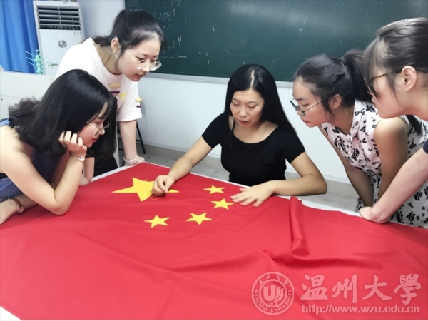 烫布,画样,剪裁,叩烫,暗撬,包边,一环扣着一环。在鲜红色,正黄色的映衬下,同学们有一种肃穆的仪式感,每个人的脸上都不由地浮出一种自豪感,这是来自中国人的自豪感。马俊淑老师接受采访时谈到:“这次我们做五星红旗,一是为了纪念国旗设计者同时也是温大校友的曾联松先生,二是为了给即将生日的祖国母亲送上来自温大学子最诚挚的祝福!”拼布献礼,也是用服装专业师生自己的方式向祖国表示拳拳情义,一针一线,缝出了骄傲,缝进了每一个人对祖国发展的美好愿景。