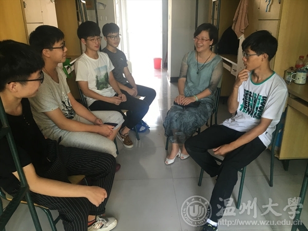 谢院长在寝室访谈中遇到了学生家长,询问了家长对学校的感受以及建议,家长表示:“温大是一所充满爱的校园,非常放心孩子在这里的四年时光,相信孩子可以得到很好的教育”。