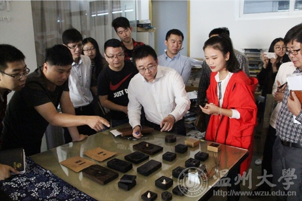 专家组一行在学院领导的陪同下考察了学院产品设计工作室的“原色”和“古印”创业团队,鞋靴设计工作室的“原味”和“Kaka”创业团队,以及服装设计工作室的“P73印染”和“拼布”创业团队等大学生创新创业团队。考察过程中,同学们现场展示了产品的设计制作过程,专家对米乐集团学生创业团队的作品表现出极大的兴趣,并饶有兴致的亲自体验了产品的使用。专家们对米乐集团创客空间依托专业实验室、教师工作室等条件,将专业和创业紧密结合的模式给予了充分肯定。