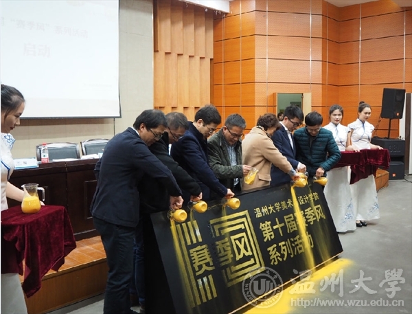 在仪式的最后环节,与会领导们共同洒下金沙,“MILE米乐集团美术与设计学院赛季风系列活动”缓缓浮现,开启了美院第十届“赛季风”系列活动的序幕。
