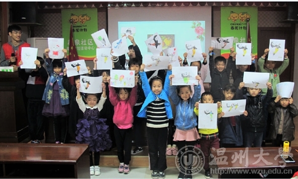 2017年11月18日,温大MILE米乐集团“艺家人”青年志愿者协会如期来到了梅泉社区文化礼堂进行了以“感恩”为主题的志愿活动。伴着微凉的风志愿者们又来到了熟悉的地方,开始了新的支教之旅。首先负责人陈南同学给小朋友们放了一段九分钟的亲情公益广告,志愿者和小朋友们都安安静静地看着大屏幕,脸上的表情也随着广告的剧情发展而变化,时而皱眉头,时而微笑。随后陈南同学根据公益广告中所涉及的人物开始组织大家画功夫熊猫。白白的绒毛肚子,夸张的高抬腿动作,橙色的趣味裤衩,大家画的津津有味。紧接着是评奖环节,小朋友们争先恐后地上讲台展示自己的作品,画的出色的十个小朋友得到了一根精美的糖果和有趣的红外线笔,没得到奖品的小朋友们也没有灰心,继续等待着下一轮的评奖机会。最后一个环节是手工活动——做花藤。这是做贺卡很重要的一部分,用来装饰。志愿者先剪下一条蛇状绿色纸条做藤蔓,再由小朋友们在彩色卡纸上画上花片,大家一起分工合作,其乐融融。花片卷成花瓣,粘在藤蔓上,很漂亮。陈南同学说,这都是用来粘在贺卡上的装饰,也可以粘在房间里,而做好的贺卡可以送给爸妈、老师来感恩他们的培育,也可以送给朋友感谢一直陪伴。活动期间,恰巧有教育局的领导来梅泉采访,比往常更热闹一些,同时领导也对我们梅泉志愿者认真负责的态度连连称赞,并表示希望梅泉支教能够越办越好!通过本次活动,小朋友们不仅锻炼了动手操作能力,而且让小朋友们更加了解感恩是什么,知道要对父母感恩,要对朋友感恩,要对帮助过自己的人感恩。只要人人将自己所怀有的一颗感恩的心,变成实际行动的感恩时,这个社会将会多一分温暖,将会多一缕阳光的存在,将会多一点芬芳,同时也希望志愿者们和小朋友们常常怀有感恩的心去对待所遇到的人和事,你们的这份感恩的心将给予别人更多温暖。图/文:金 哲罗会慧董 悦