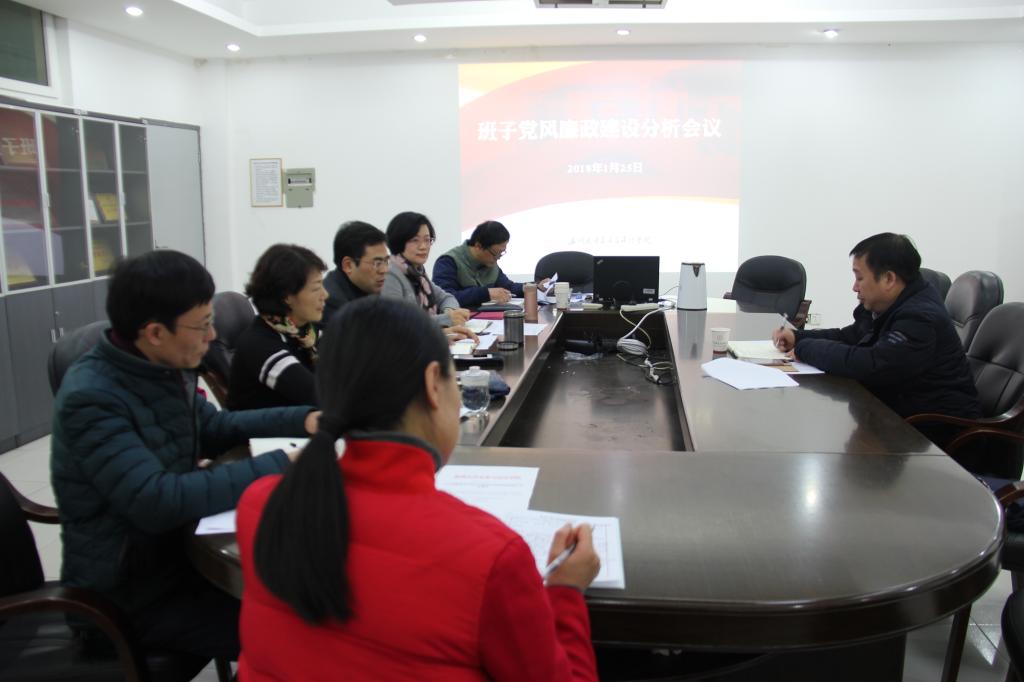 在班子党风廉政建设分析会环节,会议根据学校相关文件精神,认真执行领导班子党风廉政建设情况分析会制度,针对党风廉政建设方面存在的问题进行地毯式排摸,制定切实可行的整改措施。本次会议针对2017年的各项工作,学院党政班子逐一开展排摸与整改落实。在班子层面,每周一的班子碰头会,不定期的专题座谈会,及时了解和解决学院发展各类事务;在干部队伍建设、党风廉政教育等方面,开展结对谈话制度、签订廉政责任书、党员承诺书等具体执行措施,取得了较好的工作成效。在班子个人层面,每个成员针对分管工作中可能存在的干部、人事、财务、项目申报、教师考核、评奖评优、安全等风险点进行详细排摸,提出一系列风险防控点,在整改措施上严格按照学校规章制度执行,坚持公开、公平、公正原则,让权力在阳光下运行。