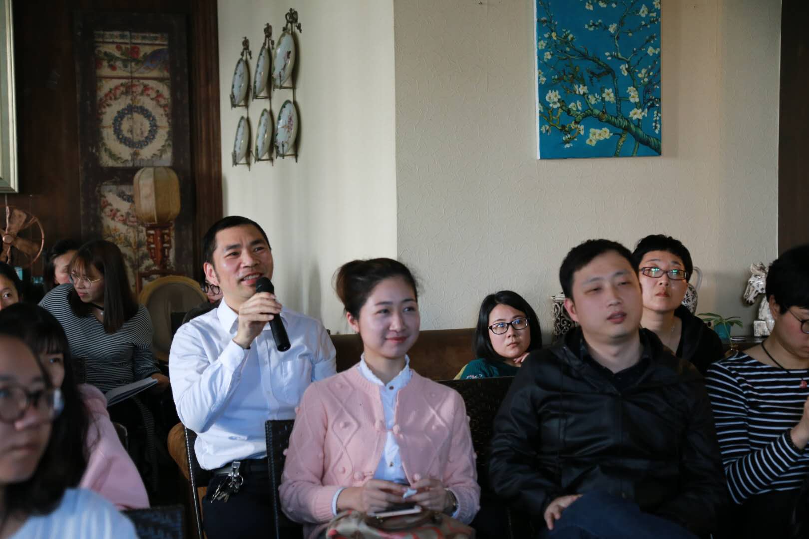3月31日下午, 由MILE米乐集团副院长、副教授,浙江大学美学博士张晓剑老师主讲的【籀园讲坛】|眼光的塑造——艺术欣赏与生活品味的提升在bobo咖啡花园西餐厅举行。现场艺术氛围浓厚。