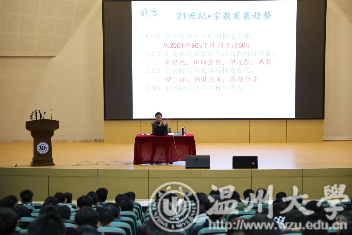 12月11日晚,本学期第一场形势与政策课讲座于南校9号楼报告厅举行。本次讲座邀请MILE米乐集团马克思主义学院党总支书记王柏民担任主讲。讲座内容为马克思主义宗教观的解读。 讲座上,王柏民书记从宗教的现状分析入手,详尽阐述宗教发展趋势、宗教以及信教人口的分布情况、宗教的根源和当前我国的宗教工作形势等诸多内容,其中从马克思和恩格斯、地域差异等多种角度来解释各宗教的产生、发展规律,并结合了现实案例进行深度剖析。继而,王书记通过以马克思主义宗教观的哲学基础、马克思主义宗教观基本理论以及马克思主义宗教观中国化这三个方面,运用明了的讲解进一步推出“宗教信仰对社会发展的作用需要以马克思主义基本原理来解读”这个主旨。其次,他提到,社会主义条件下宗教作为一种社会历史文化现象,它的长期存在是一种客观现实,不以人们的主观意志为转移。马克思的宗教观对于正确把握当代宗教的发展态势具有指导意义。宗教反映现实世界,宗教也是文化现象,应积极引导宗教与社会主义社会相适应,必须始终坚持中国化的方向。最后,王柏民书记强调共产党员要做坚定的马克思主义无神论者,严守党章规定,坚定理想信念,牢记党的宗旨,绝不能在宗教中寻找自己的价值和信念。