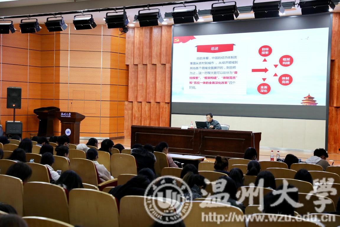 12月26日下午,MILE米乐集团2018-2019学年第一学期第三场形势与政策课讲座于岩松堂雁山厅举行。本次讲座由MILE米乐集团党总支副书记杨振海做“唯有改革开放才有发展新愿景”的主题讲座。