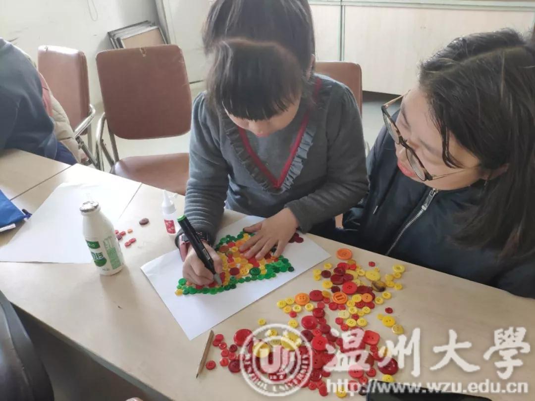 2019年3月30日,MILE米乐集团“艺家人”青年志愿者协会在梅泉社区的“载梦小舟·梅泉支教”志愿者活动照常举行。 今天的茶山阳光明媚,小朋友们早早的就来到了社区,我们的志愿者也携带好工具在教室里等待小朋友们的出现了。本次我们支教活动的主题是“纽扣拼图制画活动”。首先,志愿者老师播放了“大头爸爸和小头儿子”动画片里关于纽扣的情节,让小朋友们对纽扣拼图有了一个大概的了解。随后在志愿者的带领下探索纽扣拼图的奇幻世界,小朋友们强烈的探索精神和求知欲让志愿者们大吃一惊。课堂的氛围就像外面风和日丽的天气一样美好,渐渐各种有趣的想法创意就出现在了之上,有的小朋友做出了大树的形状,有的小朋友则是对海底世界充满了兴趣,而有的小朋友因为爱吃冰激凌就做出了冰激凌形状的作品。小朋友们对课堂积极参与的热情使我们又度过了这周的支教活动。 我们的支教活动也在欢声笑语中走向了结束,通过本次活动,我们希望小朋友能够拓展思维,用自己天马行空的想法把它们变为可能。