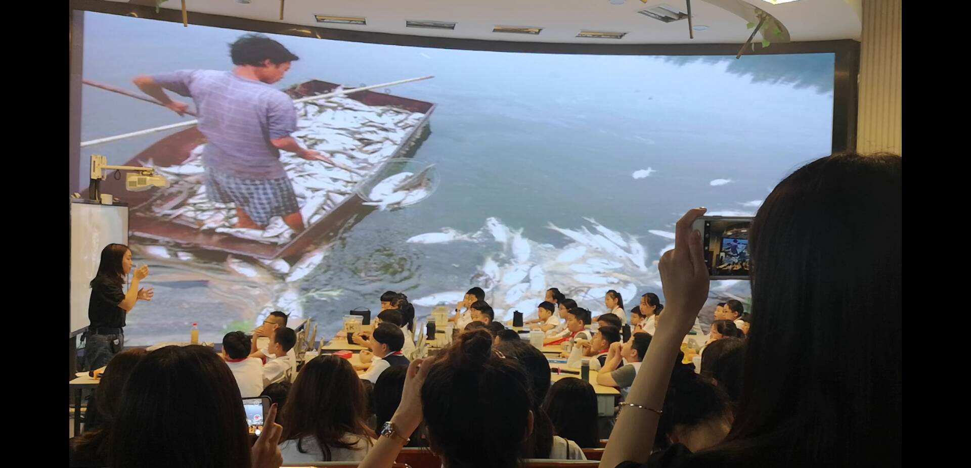 在主持老师简短的介绍后,16级实习生朱灵睿老师正式开始了她的课程。朱老师将她的课程分成了三个环节:在第一个环节,引出了设计海报的意义;在第二个环节中,她展示了海报,并引导同学生应用创意;第三个环节则是让学生自己动手创造海报,让同学们对海报有了初步的理解。