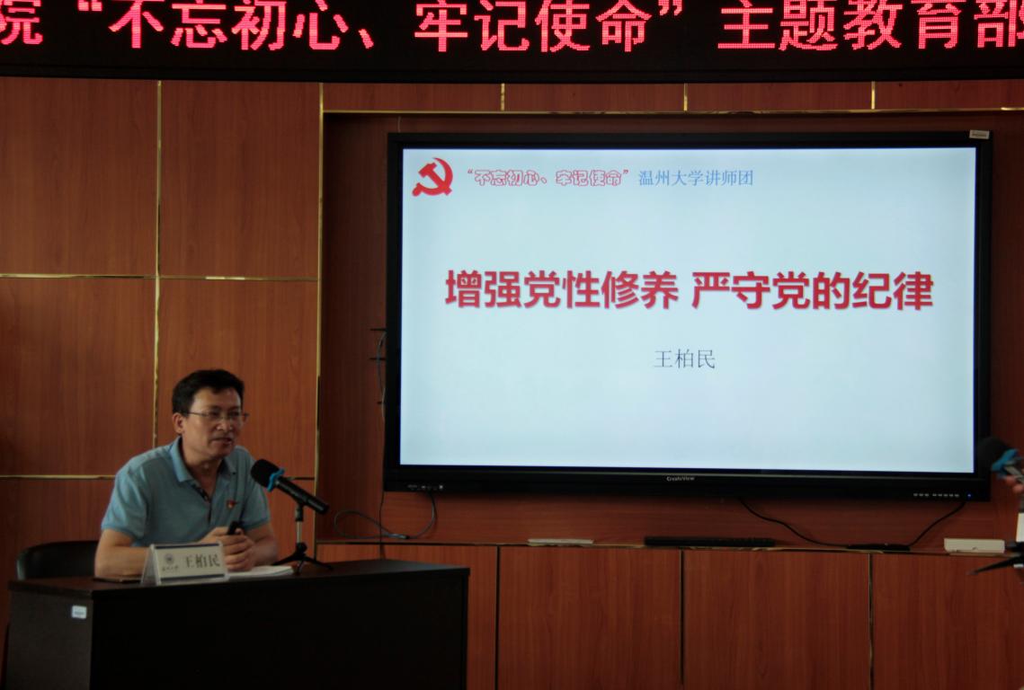王柏民同志作《增强党性修养、严守党的纪律》的专题报告