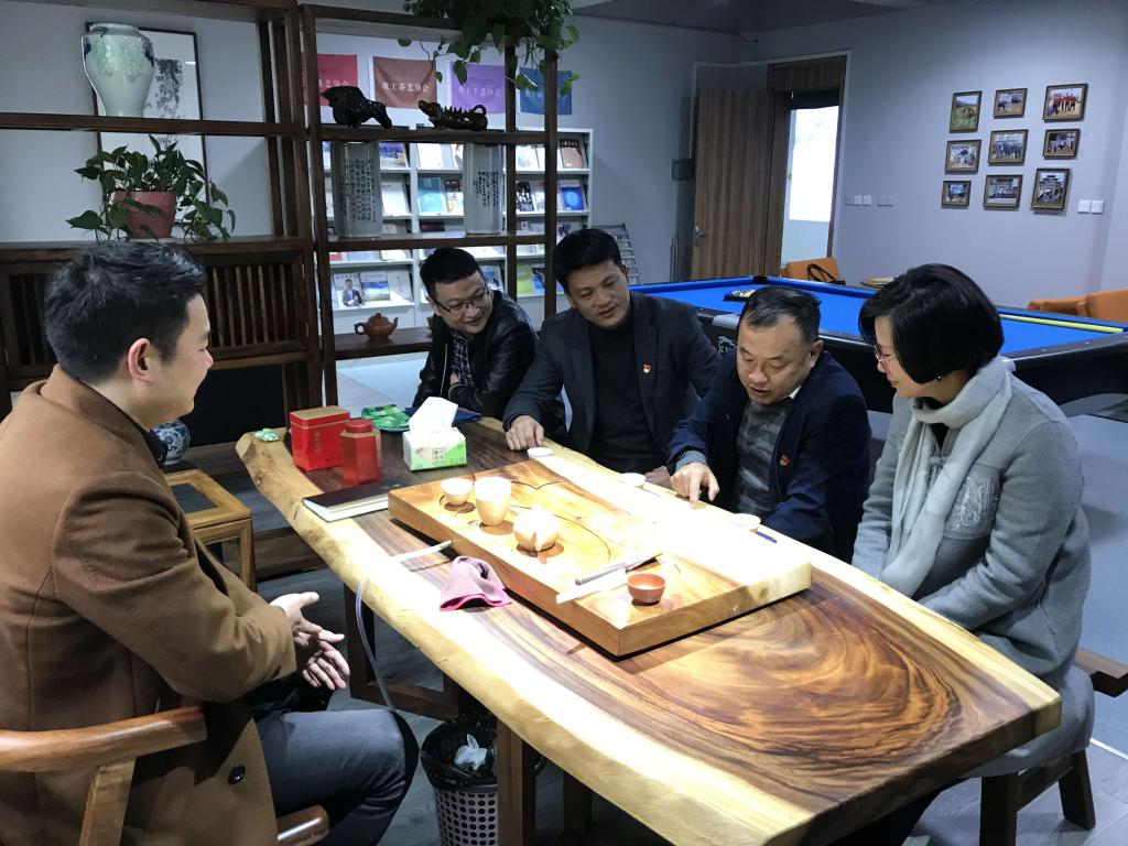 美术学院分工会主席祝忠良向张主席介绍了美院“教工之家”的筹建情况和成果。他表示:2019年以来,在校党委和校工会的大力支持下,美院工会高度重视“教工之家”建设,发起“增强凝聚力”工程。为了改善教职工活动场所,丰富教职工的业余文化生活,在上级工会的大力支持和新一届领导班子的关怀下,学院对原203“教工之家”进行改建和装修。此次改建,学院在活动室内为大家添置了新家具和各种休闲娱乐设备,有台球桌、阅读架、茶台等,使得“教工之家”旧貌换新颜,无论实用性、舒适性和美观度都有了大幅提升。新环境古雅中融合现代风格,室内文化布局经过精心设计,也体现了美院专业特色。此外,本学期在学院党委的支持下,我们还成立了教工棋艺协会、教工茶艺协会、教工手艺协会、教工羽毛球协会四个院级协会,目的是希望全院教职工以协会为平台加强交流,增进情感,以美院为家、以温大为家。目前,全院已有三十多名教职工加入协会参与活动,收到了良好的效果。