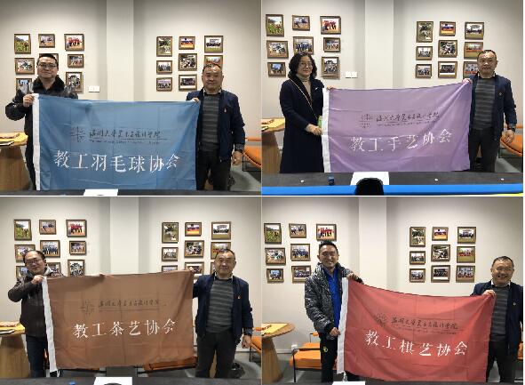 仪式上,校工会主席张希均和美术学院院长谢子静共同为美术学院“教工之家”揭牌,为教工棋艺协会、教工茶艺协会、教工手艺协会、教工羽毛球协会的秘书长授会旗。仪式后,张主席兴致浓厚地体验了茶艺协会的茶道、观赏了手艺协会的手工布艺作品。张主席对美术学院工会工作表示肯定和鼓励,对新教工之家的建设成果表示赞赏。
