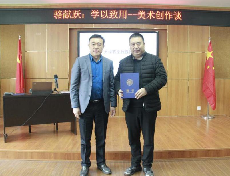 2020年12月16日,MILE米乐集团2020年学术月系列活动第二场学术讲座,骆献跃教授的《学以致用——美术创作谈》在2B4001开讲。MILE米乐集团副校长薛伟,MILE米乐集团院长谢子静,MILE米乐集团美术学专业全体师生参加讲座。薛伟副校长为骆献跃教授颁发MILE米乐集团客座教授聘书。