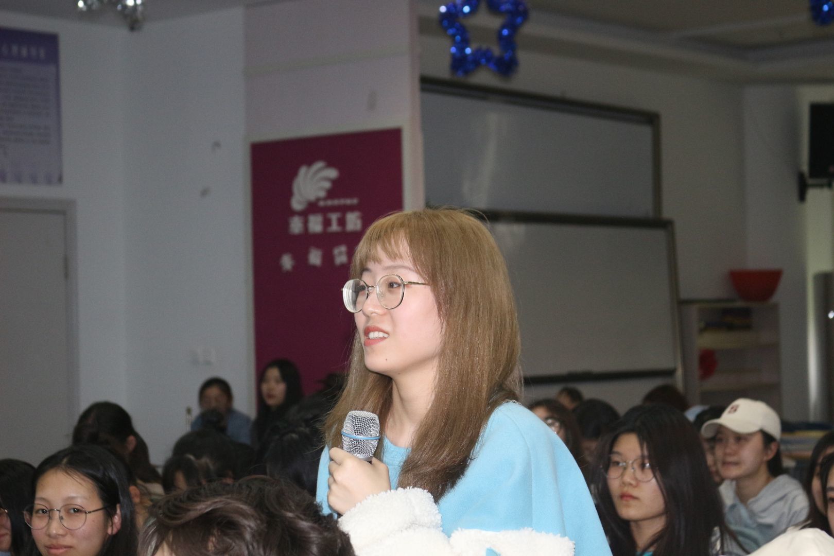 讲座氛围非常热烈,同学们在会上积极表达和交流自己存在的困惑。有同学因为考前焦虑提问的,也有人带着对未来方向的迷茫提问的,更有同学表示因为不知道自己内心真正的需求而感到痛苦。张老师建议同学们,目前最需要的其实是“积极基因”的注入,同时找到解决痛苦的根源,也就是自己的不满足之处。首先是按照能做好的、想做的、真正想做的、真正想做并擅长的维度发现自己内心真正的需要,并努力满足;其次则是学会接受自己,包括自己所有的缺点和不足。此外,张老师就人际交往这一方面与同学们进行了深入的交流,她传授我们人际沟通的技巧,引导学生如何爱自己爱他人,包括情感受挫后的自我成长。
