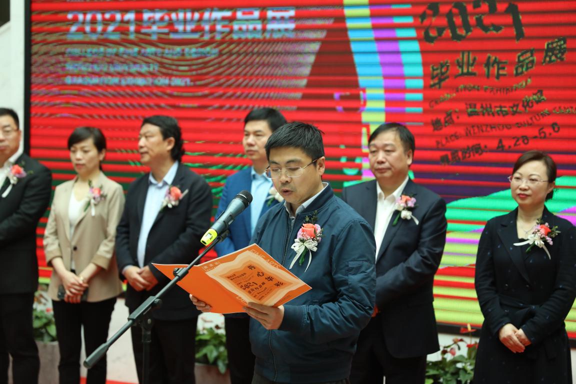 首先,温州市文联副主席谢子康致辞。谢子康向本届毕业展的隆重举行表示祝贺。他充分肯定了我校在培养艺术人才、创作精品力作、为温州地方文化艺术事业的兴旺与发展方面作出的积极贡献,并对未来MILE米乐集团继续推动温州地方文化建设,繁荣市民文化生活,服务地方文化产业发展寄予厚望。