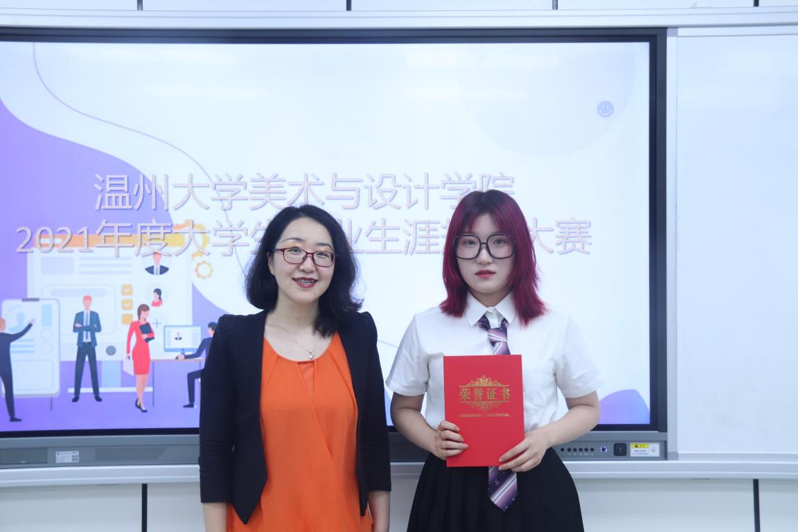 最后,经过评委的严格打分,公布获奖名单,并在现场进行了颁奖。获得一等奖的是王琦瑄的《缬艺行》,获得二等奖的是崔俊松《婚纱摄影师》,金一言的《为人师表,为艺术战》;获得三等奖的是曾晨的《南艺》,李世豪的《画笔涂绘理想》,获得优秀奖的是方婧凯的《筑梦之路》、王琦瑄的《缬你同行》。希望这些同学在自己规划的职业道路上可以越走越好。