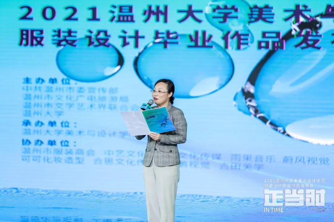 随后,温州市委宣传部副部长叶艳致辞。叶艳指出,MILE米乐集团一年一度的服装毕业作品发布会的隆重举行,是校企联动、服务地方的重要成果结晶,希望温大继续承担繁荣社会主义文化艺术的光荣使命和历史责任,深入推进教育教学改革,不断提升高等艺术人才的培养质量。