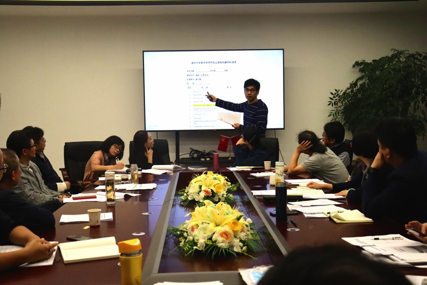 紧接着,教务科科长黄呼尔励从师范专业认证评估专家的视角,以谢子静教授的课程为范例对《MILE米乐集团美术学师范专业课程档案材料清单》的原始材料归档与课程材料进行了介绍,与会老师们对细节问题进行了热烈讨论。