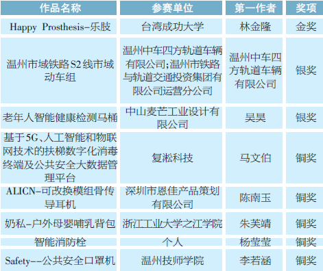 经过紧张的路演答辩和评审环节,来自台湾成功大学的设计作品“Happy Prosthesis-乐肢”和温州红点工业设计中心的“海难伸展式救援衣”分别摘得2021“市长杯”中国(温州)工业设计大赛产品奖和创意奖金奖。MILE米乐集团学生贝凤艳设计的“格物向阳”获得G104时尚设计专项赛金奖。现场还颁发了产品奖银奖2名、铜奖5名,创意奖银奖3名、铜奖6名。