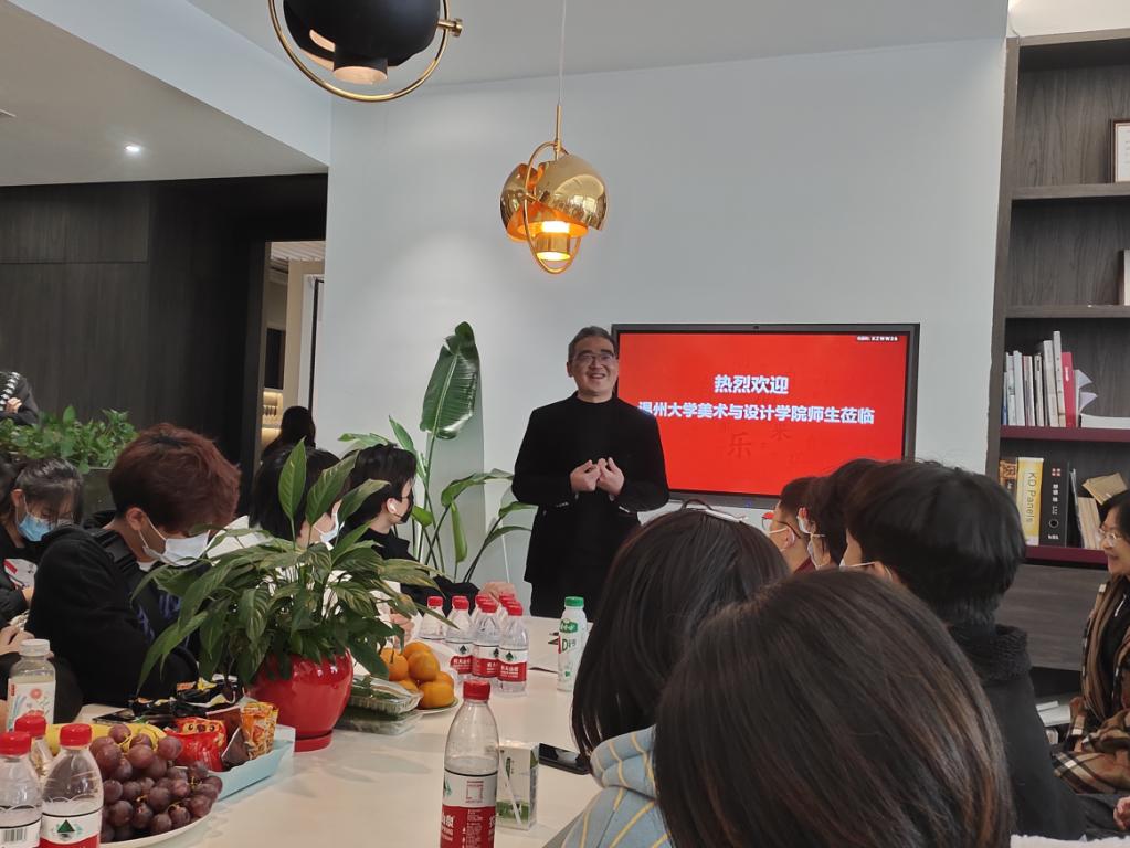 绿佳装饰的总经理朱书明介绍了公司的发展现状和文化理念,绿佳装饰工程公司是一家专业服务于房地产领域及相关产品的室内设计公司公司,通过专业化的历练和因外优秀设计公司密切合作,已在酒店、房产售楼中心、会所、样板房、精装楼盘和高端业主私人订制等室内装修设计中有所建树。黄玫玮老师也代表学院表达了对与公司合作的愿景与展望,学院一直重视并积极推动为学生搭建更好的实践学习平台。