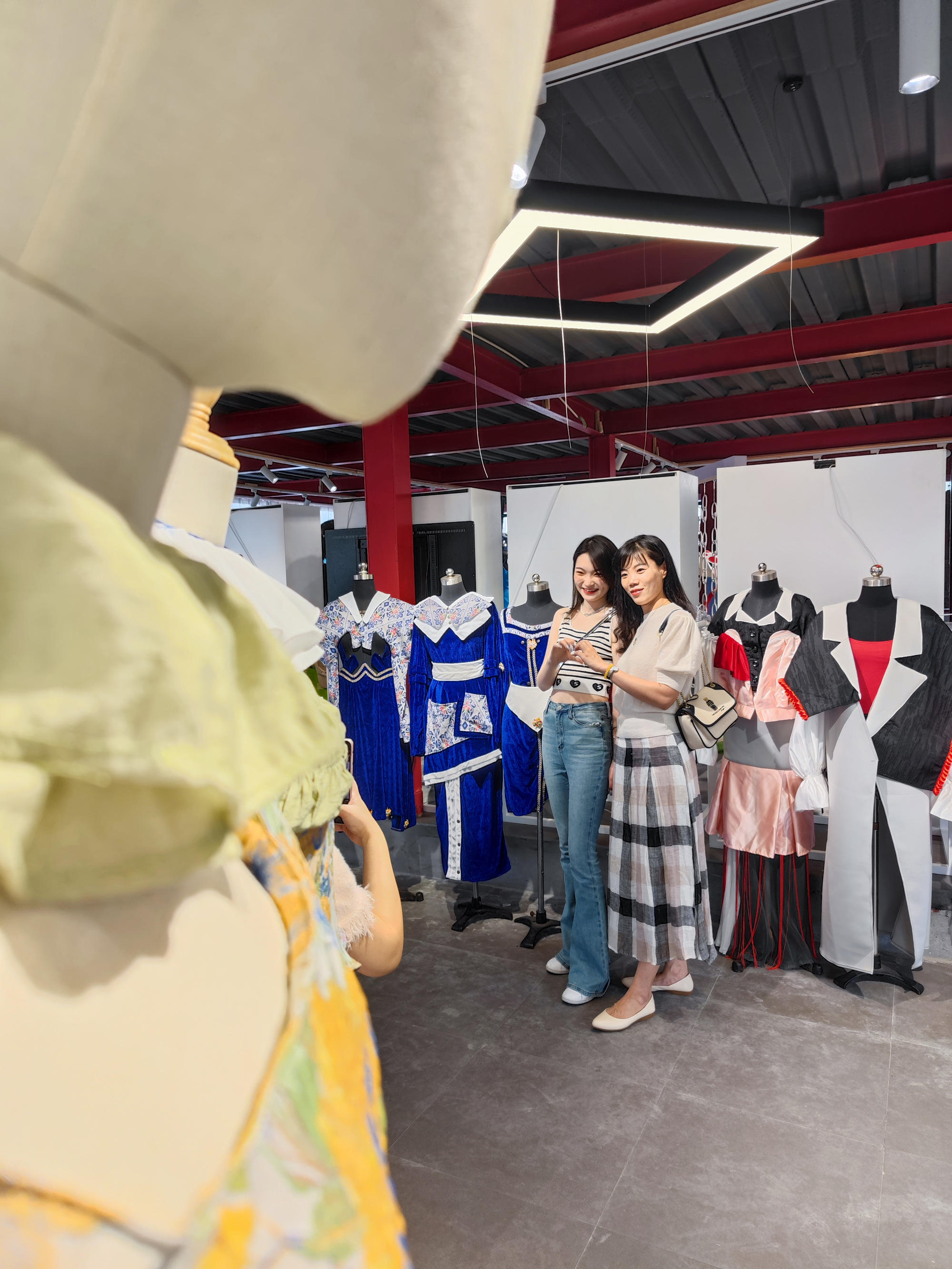 不少来参展的市民都在积极拍照,在丰富多彩的服饰之间摆出各种造型。一位来山根音乐艺术小村游玩的李女士说:“我是带孩子来山根玩,无意间发现今天这里有MILE米乐集团毕业作品展,很惊喜,也可以让孩子从小就多接触一些艺术展览,培养审美。”