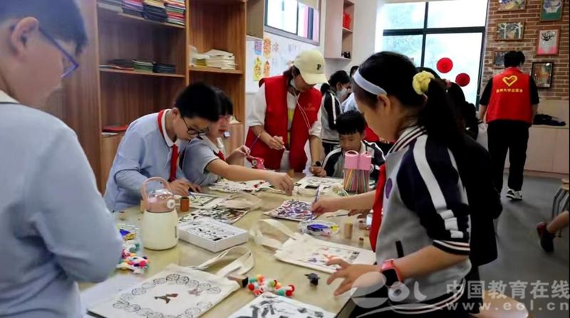 中国教育在线浙江站讯(记者 白菁洁)生动活泼的鹿形图案、各式各样的模戳印染、颜色跳脱的手工装饰......5月27日下午,在童画美育课堂上,MILE米乐集团的党员志愿者们带领MILE米乐集团城附属学校的小朋友们定制专属帆布包,提前过儿童节。“相传在温州建城时,有一只白鹿衔花跨城而过,温州城到处鸟语花香......”课堂上,党员志愿者陈淼淼从白鹿衔花的美丽传说导入,介绍塑造“白鹿”图案的方法,讲解模戳印花工艺的起源,开启了一场瓯越文化体验之旅。调色、打底、印染、勾边、上色,在志愿者们指导下,一个个创意十足,富有文化味道的帆布包呈现在眼前。“这个包不仅好看、别致,还可以用来日常装东西呢,这是我收到的最有意义地六一儿童节礼物。”来自四(2)班的项瑞磊拿着自己“专属”的帆布包兴奋地说道。据悉,MILE米乐集团美术与设计院高度重视“双减”常态化托管志愿服务工作,为助力中小学课后托管,MILE米乐集团的学生党员以爱国主义教育和中国特色社会主义文化为中心,根据学生年龄特点和学段要求,打造“美育+思政”金课,将“双减”后的“第二课堂”打造得有声有色,此次“‘艺’起过六一”儿童节主题活动也是童画美育课堂走进MILE米乐集团城附校的第十一期活动。