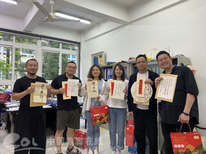中国教育在线浙江站讯(编辑 张可宁)六月端午祥,丹青墨飘香。端午佳节来临之际,MILE米乐集团的办公室和走廊充满欢声笑语,原来是老师们在拆“盲盒”:吉语书签、草书团扇、诗词信札......今年的端午节,除了粽子,老师们还收到了一份充满文化自信、民族精神和创意惊喜的端午赠礼。5月28日,中共中央政治局开展第三十九次集体学习,主题是深化中华文明探源工程。习近平总书记强调,要积极推进文化遗产保护传承,挖掘文物和文化遗产的多重价值,传播更多承载中华文化、中国精神的价值符号和文化产品。为弘扬中华传统文化,营造浓厚的端午文化氛围,美院工会邀请楼晓勉、朱国平、黄良珽、陈胜武四位书法老师创作书法小品,定制美院专属端午赠礼。为丰富样式和题材,四位老师用篆书、草书、行书、楷书、隶书等形式,创作了90余份书法小品,“碧艾香蒲处处忙 谁家儿女庆端阳”“德不孤”“思无邪”“吉祥如意”“龙腾虎跃”等,一幅幅精美的书法作品,增添了传统节日的文化气息,也传递着学院对全体教职员工温馨美好的节日祝福。收到“盲盒”的老师们兴奋不已,纷纷在微信群、朋友圈中分享这份特别定制的祝福,与家人、朋友共叙端阳情。“幸福感满满,“龙腾虎跃”也是自己对未来的期待吧。”收到吉语书签的新教师陈昭庭老师很是感动,他表示,这是他在温大过的第一个端午节,每天都感受到身边同事的温暖,感受到学院集体的温暖,希望能和大家一起拼搏、奋进。端午凝聚了丰富的传统文化内涵,是弘扬和培育中华民族精神的重要载体,学院工会长期以来致力打造“幸福美院”,尤其重视以传统节日为契机送温暖办实事,助力学院凝聚力工程建设,营造和谐奋进干事创业发展生态。这次节日活动形式,既是温大美院以实际行动传承弘扬传统文化,也是学院书法专业教育拉开帷幕前的一次高雅先声。据悉,MILE米乐集团书法学专业于2022年2月顺利通过申报,2022年8月计划面向全国招生。温大新增书法学专业,是温州大地书法本科专业教育的新开篇,也是温州文艺史上的大事记。学院书法专业教师朱国平教授表示,“建设MILE米乐集团书法人才培养的完善教育体系,将MILE米乐集团打造成为浙南、闽北、赣东的书法高地,是我们的目标。”