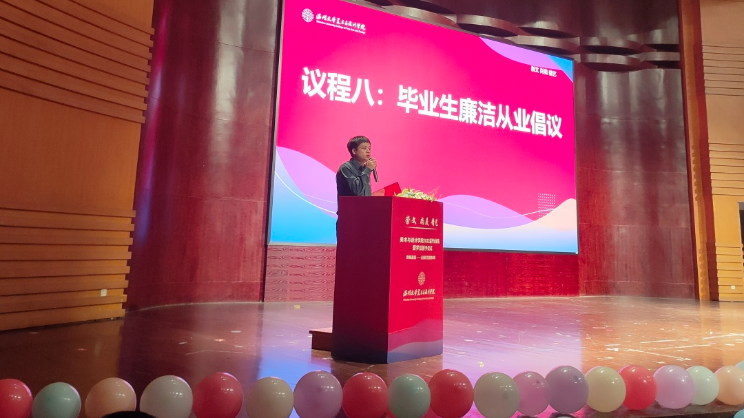 石建林老师带领2022届全体毕业生进行“廉洁从业倡议书“宣誓仪式。