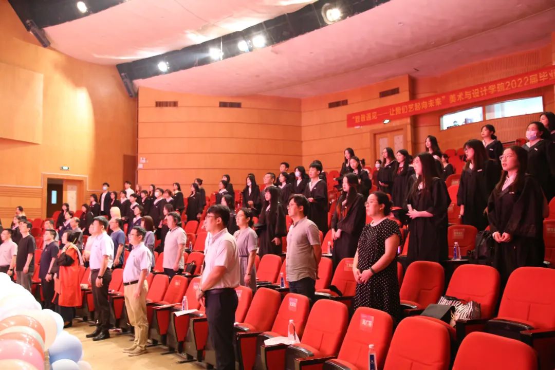 仪式结束,全体师生一齐奏唱校歌。“大哉师道天下尊,承往哲兮启后人。厚培德本,深濬智源,学成致用教化谆……”全体师生齐唱校歌。在歌声中,美院全体毕业生正式告别镌刻着他们青春足迹的温大校园,迈向更大、更高、更远的人生舞台,全体美院毕业生必将秉承“崇文、尚美、精兿”的院训,争做堪当民族复兴重任的时代新人,创造属于自己的、温大的荣光。