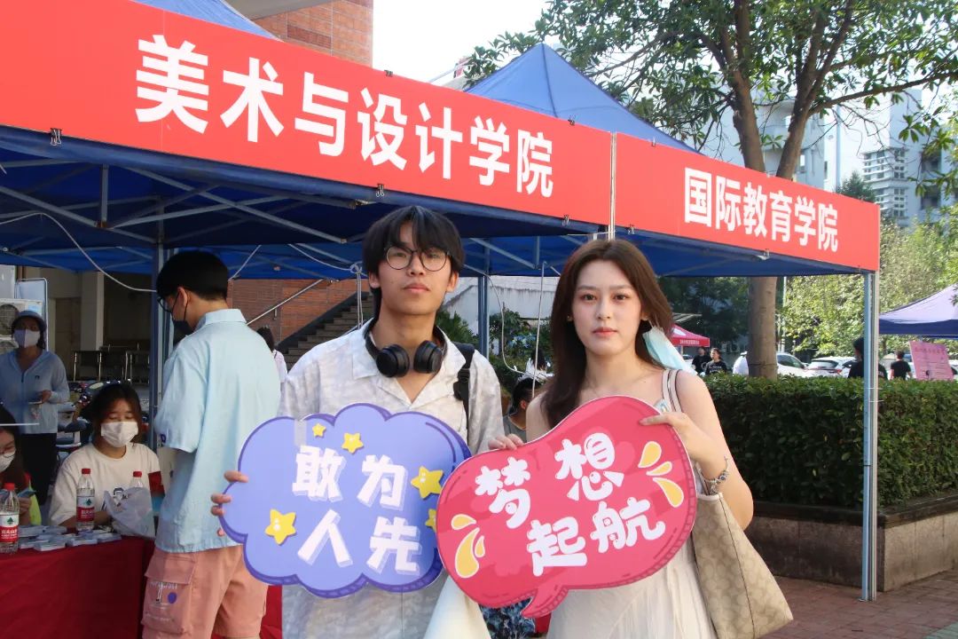 在报到处,学院邀请了“非传统工坊”,结合学院的专业特色,带领新生体验非遗传统蓝染文化。以扇子为载体,让非遗走出传统,走进学生生活,融入艺术的时尚气息,唤醒传统的记忆,再现流行的魅力!希望新生可以在体会非遗文化美丽的同时,也感受到我们美院特有的美育气息。