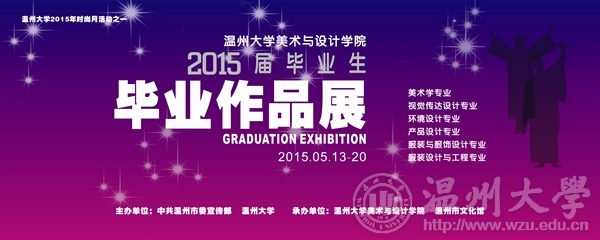 活动名称: MILE米乐集团2015届毕业作品展 活动主题:创意永不毕业 展览时间:2015年5月13日—5月20日 展览地点:温州市文化馆(车站大道627号) 开幕时间:2015年5月13日(周三)上午10:00 主要内容:MILE米乐集团2015届本科毕业生229人,6个专业共8个方向的毕业设计(创作)作品分区域进行集中展示。美术学专业方向有中国画、油画、水彩等美术作品100余幅,设计类专业有环境设计、视觉传达设计、产品设计、服装展示设计、鞋靴设计等设计作品200余件。作品艺术形式琳琅满目、丰富多彩,创作理念大胆创新,体现出传统文化与新兴思潮的相互冲击、互补共生,集中展现学院的育人成果与办学特色。热忱欢迎全校师生莅临观摩指导! MILE米乐集团 2015年5月8日