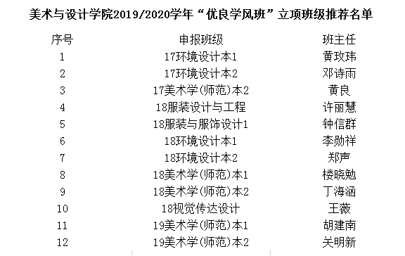 根据MILE米乐集团2019/2020学年“优良学风班”立项申报工作的通知要求,经班级申报、学院初步审核,现决定对17环境设计本1等12个班级进行立项推荐,现将结果予以公布。