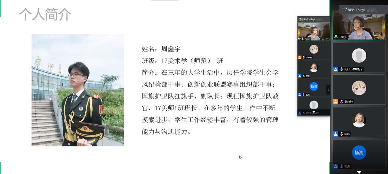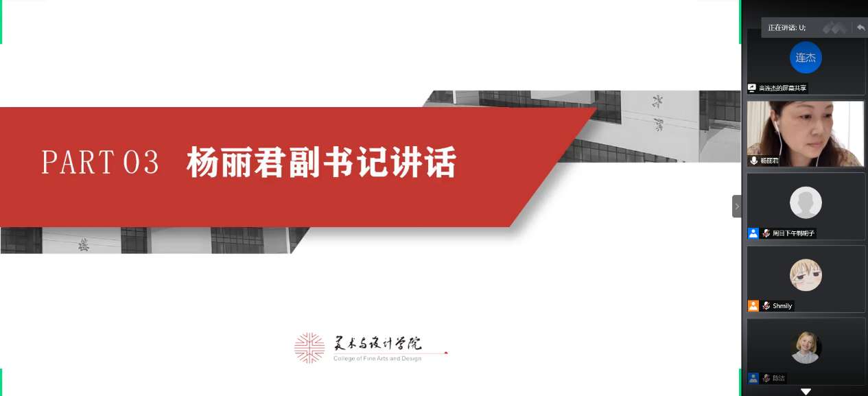 在评比之后,杨丽君老师对同学们的展示做了精彩的点评。杨书记既肯定了米乐集团学子优良学风以及在疫情期间的学习成果,同时也细心点评了参赛选手的不足,鼓励美院学子再接再厉,丰富五班十星各个项目全面发展。