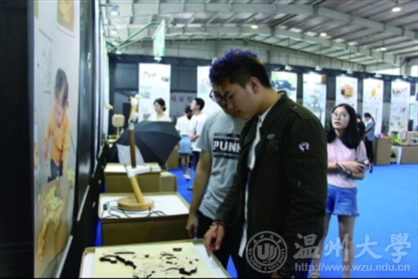 10月22日至23日,省第八届大学生工业设计竞赛在MILE米乐集团举行。省内各大高校的600余名设计精英以木材或纤维制品为主,结合其他材料,进行了一场创新创意大比拼。经评委打分评审,193件作品入围决赛,最终选出一等奖33项。图为温大学生在现场观看参赛作品。