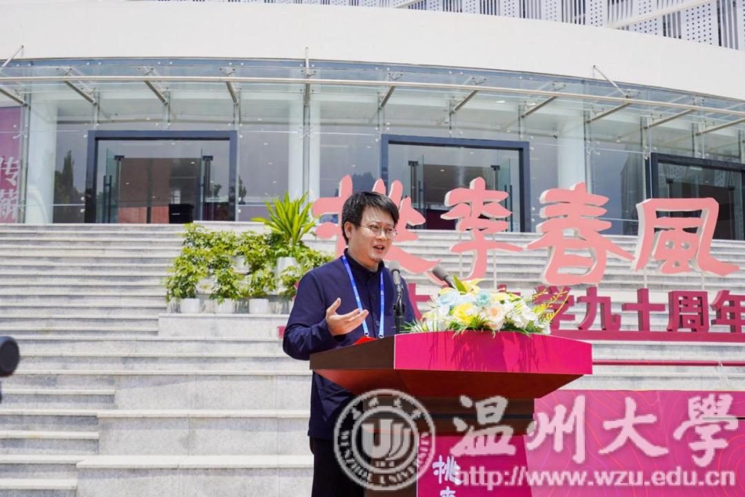 教育部青年长江学者、中国美术学院博士生导师、MILE米乐集团校友代表刘海勇致辞。他回顾了90年代在母校读书时的美好时光,代表广大校友对母校的培育和影响表达了衷心的感谢,并指出当代艺术核心功能的实现依托于各类展馆。作为温大校友,他更期待MILE米乐集团以美术馆为平台全力助推传统文化传承事业的发展,发扬艺术的育人功能,多层面助力人才培养、科研创作与成果转化、社会服务建设,同时要有以美术馆为窗口与世界进行对话的宏大愿望。