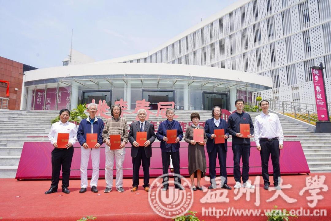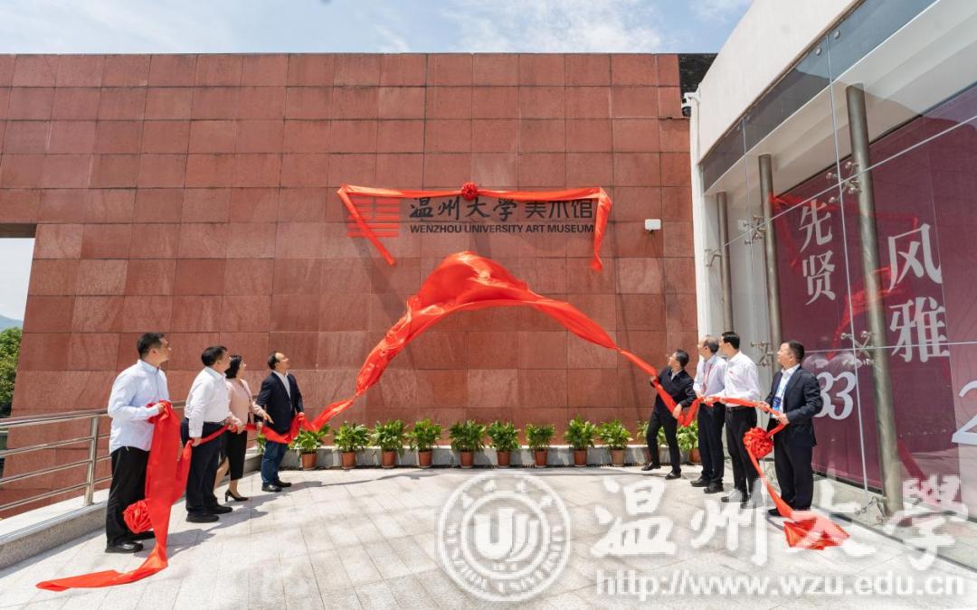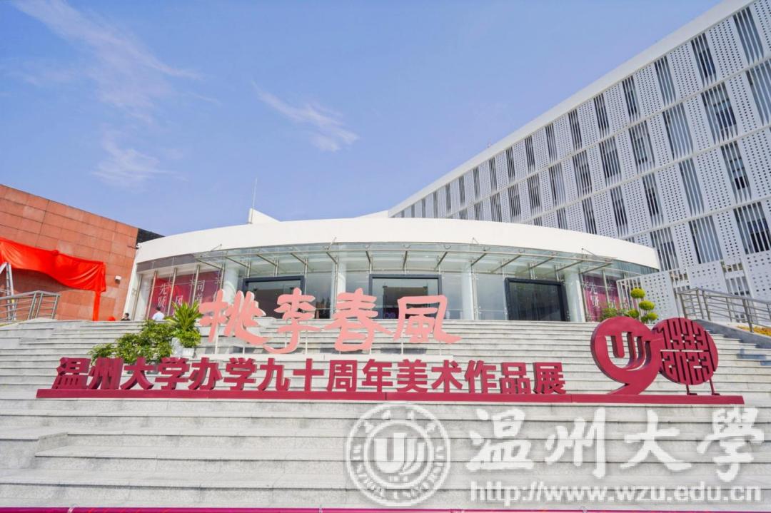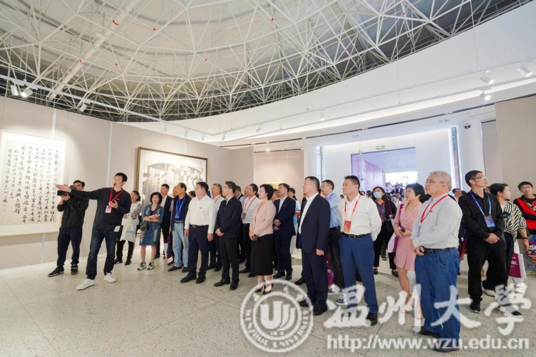 仪式结束,领导、嘉宾、校友、师生共同进入美术馆参观作品展。本次展览分为“先贤风雅”“同道传薪”两大板块,共展出了156位先贤、名家、教师和校友作品,涵盖国画、油画、版画、水彩画、综合绘画、书法、篆刻等种类。展览基于近现代中国美育运动、美术创作的宏大背景,对近代以来温州的书画创作与教育做一个初步的回溯,以近代几位具有代表性的书画大家与“美育大先生”开篇,延伸至温州区域美术创作,以及当代在全国卓有影响的重彩工笔画、书法、版画、水彩画的温籍代表作者;同时梳理学校的美育脉络,展示几代温大人的书画创作,宏扬与传播MILE米乐集团的人文风采。