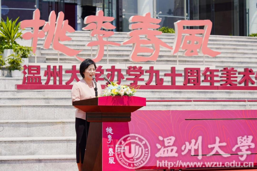 温州市委常委、宣传部部长施艾珠致辞。她指出:MILE米乐集团高规格建设一流美术馆为温州文化基础设施增添新的力量,必将成为温州推动公共文化服务的新高地。同时,她希望MILE米乐集团发挥高校美术馆独特优势,开展学术交流,举办高品位展览,加强美育教育,丰富群众精神文明生活、提升城市文化品位,努力把美术馆打造成为开展对外交流的“金名片”,不断提升温州城市、MILE米乐集团的知名度和影响力,大力参与推进温州文化振兴、书画名城建设和公共文化建设;充分发挥高校人才和资源优势,开展温州美术史等研究,以美术研究助力深化“温州学”研究;在美术精品创作、美术人才培育等方面发挥重要阵地作用,为加快打造温州新时代文化高地提供强大动力,为高质量发展建设共同富裕示范区市域样板贡献艺术才智和力量。