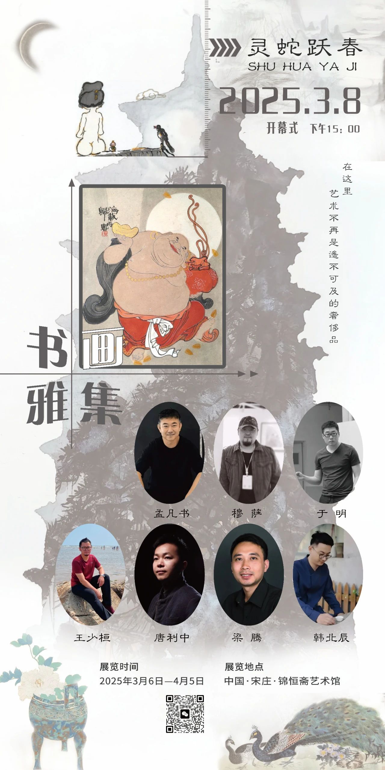 “灵蛇跃春”这四个字,寓意深远,既是对新春的美好祝愿,也是对本次书画雅集主题的生动诠释。“灵蛇”象征着智慧与灵动,它在春天的舞台上跃动,寓意着艺术创作的无限可能与勃勃生机。而“跃春”二字,则让人联想到万物复苏、生机勃勃的春日景象,正如书画艺术家们用笔墨捕捉的那一抹抹春意,跃然纸上,令人心旷神怡;一幅幅作品,或灵动飘逸,或沉稳厚重,它们在画布上自由挥洒,不受传统束缚,如同为艺术之蛇添上独特的足迹,探索无垠的艺术天地......