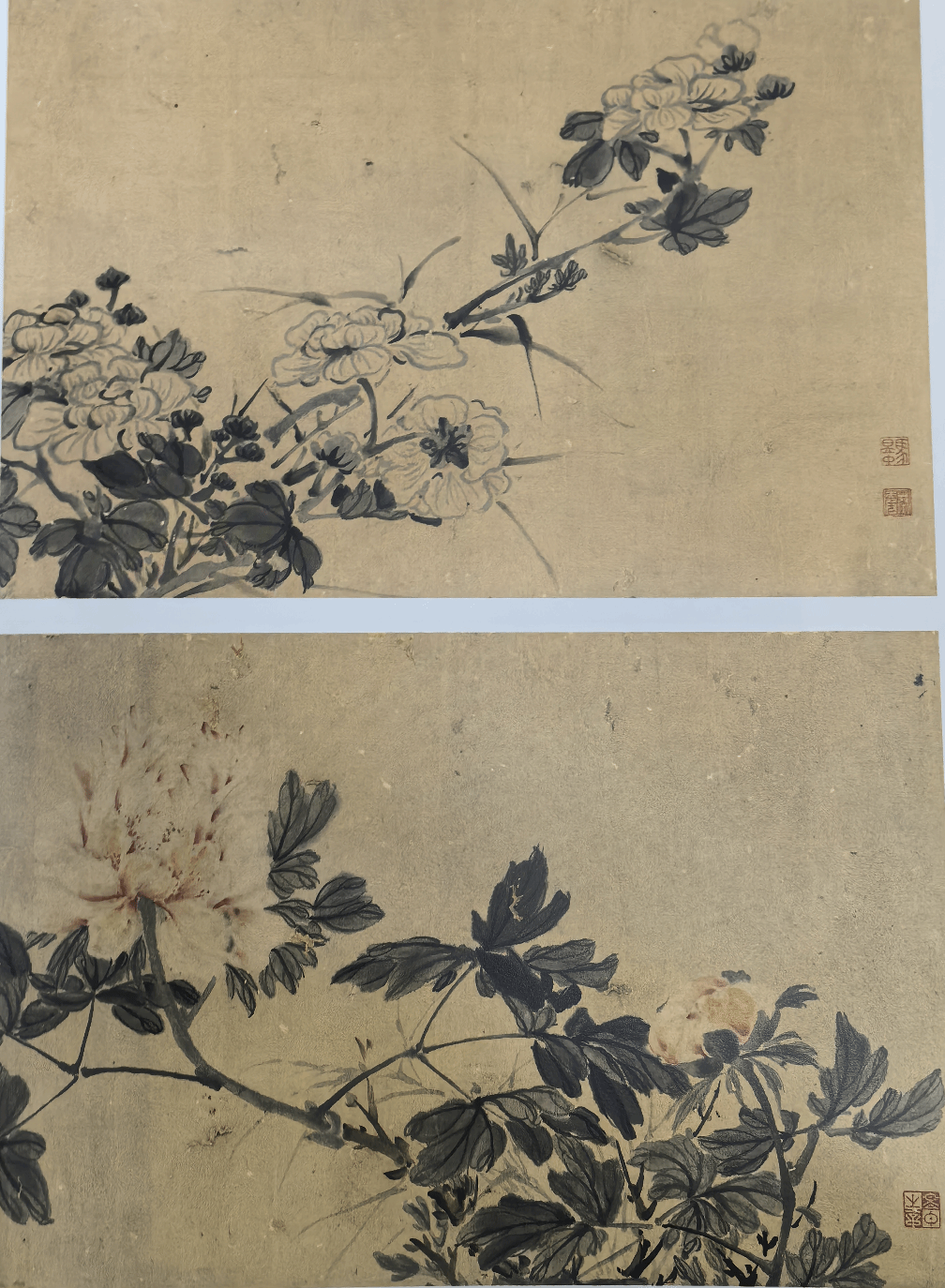 清 马昱中设色紫藤、牡丹斗方 温州博物馆藏